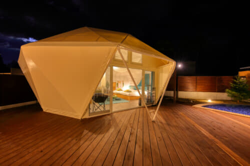 依據地區、住宿、一日遊或設施規模,選擇適合的豪華露營設施並進行預約。